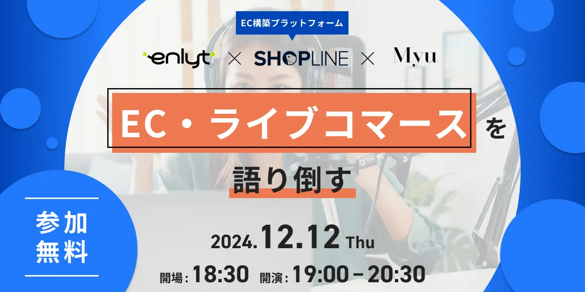 12月12日、福岡で革新的なECサイト構築サービス「SHOPLINE」が主催し、株式会社Enlytとファッションブランド「Myu」が共同でイベントを開催します。このイベントでは、ECとライブコマースの最新情報や活用方法について語り合います。