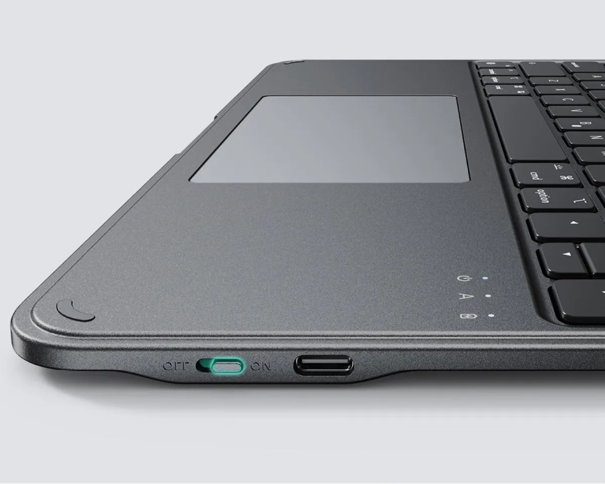 通常のiPad用キーボードと比べて約65%大きいトラックパッドは、マルチタッチジェスチャーに対応。クリックやスクロール、ピンチイン・ピンチアウトなどが直感的に行えます。この機能により、iPad本来の操作がさらにスムーズに、そして効率的に進みます。