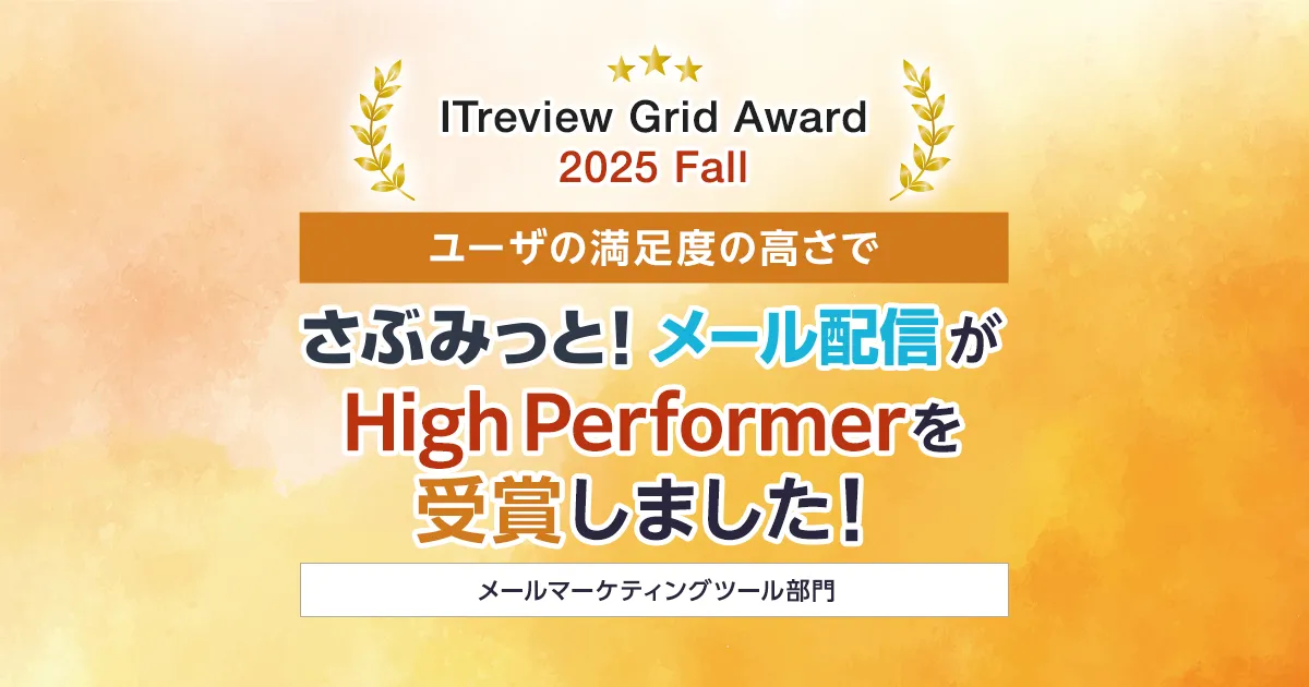 株式会社イー・エージェンシーが提供する『さぶみっと!メール配信』は、2025年10月15日に発表された「ITreview Grid Award 2025 Fall」で、メールマーケティングツールカテゴリーの「High Performer」を受賞しました。この受賞は、顧客からの高い満足度に基づいており、同ツールのイトなお客様の声が反映されています。