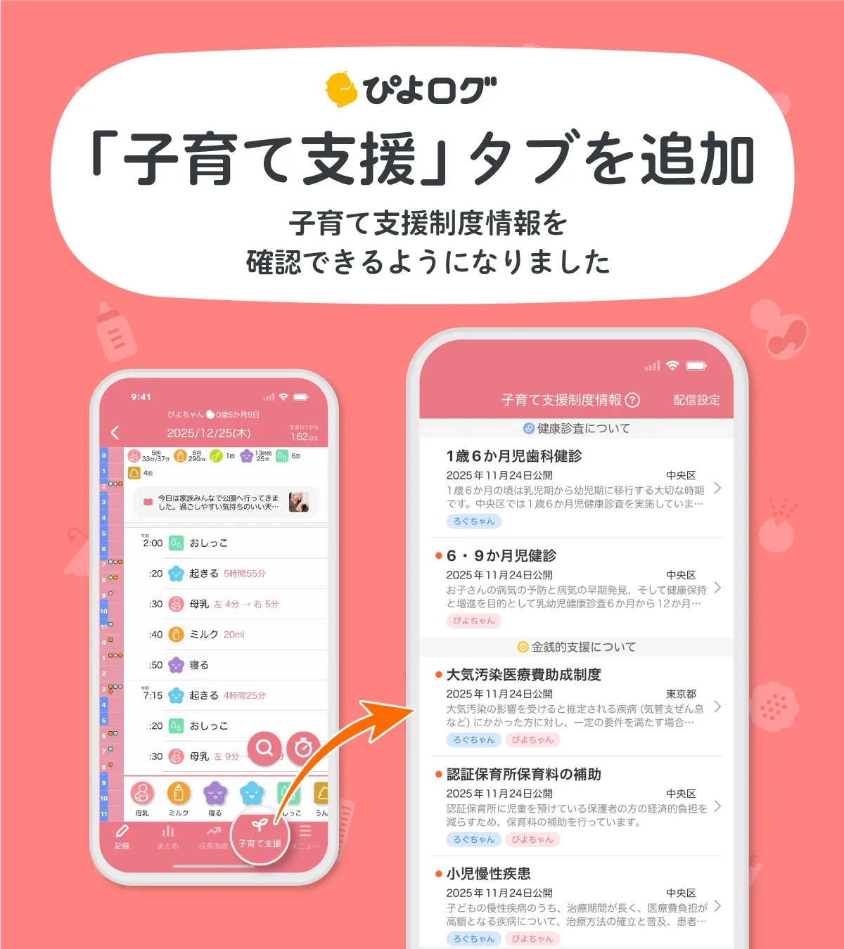 「ぴよログ」が自治体情報と連携し、子育て支援を強化