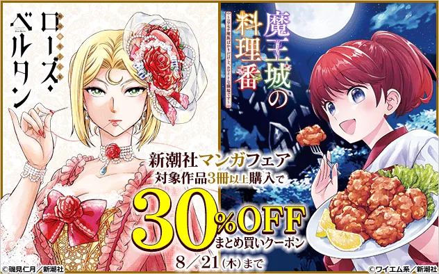 このフェアでは、新潮社からのマンガを対象に、3冊以上購入することで30%の割引が受けられます。具体的には、人気作である『傾国の仕立て屋 ローズ・ベルタン』や『魔王城の料理番 ~コワモテ魔族ばかりだけど、ホワイトな職場です~』などが対象です。