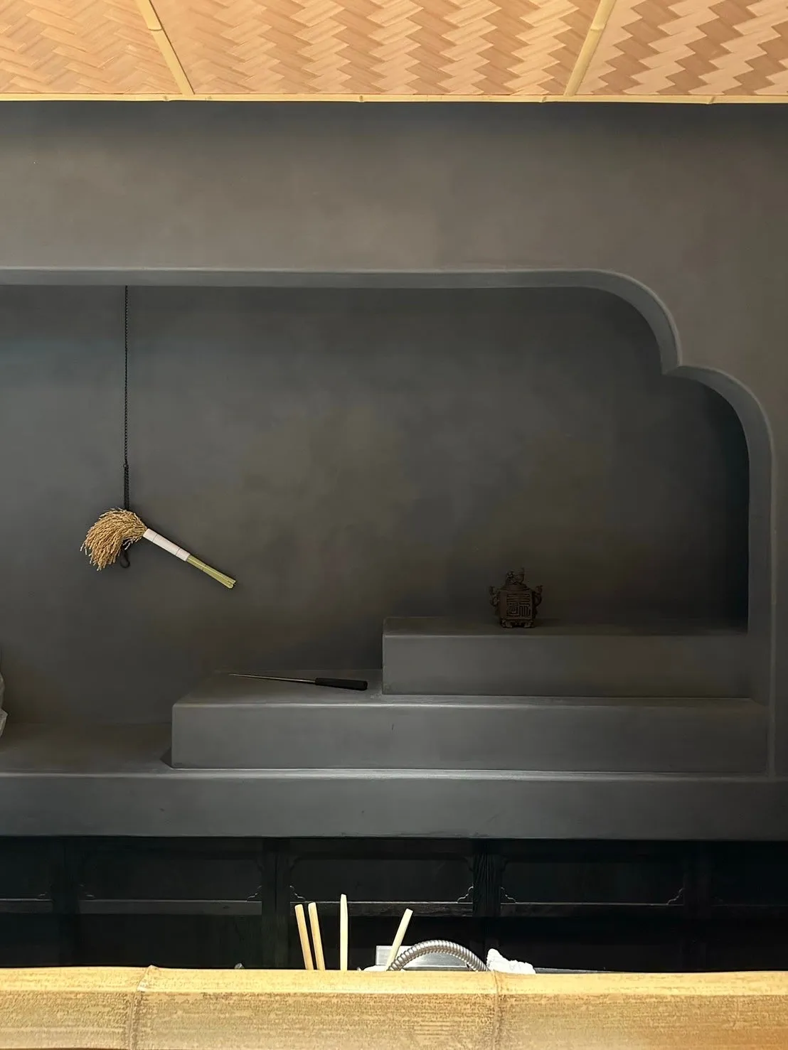 このオープンに際し、内装施工を手がけたのは株式会社ブランニュープランニング。代表の村田晃士氏が指揮を執り、洗練されたデザインが施されました。店内の仕上げには左官技術を用い、特徴的な黒を基調とした空間を作り上げています。角がないデザインは、米の特徴を反映させたもので、この独自性が来店者を惹きつけてやみません。