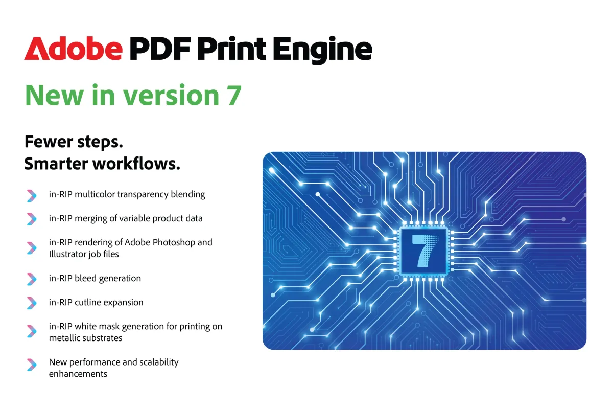 2025年5月、アドビ社はBerlinにて、最新のAdobe PDF Print Engineバージョン7を発表しました。この新バージョンは、印刷業界の主要な機器メーカーやRIP(Raster Image Processor)メーカーからの要望を反映させた革新的な技術を搭載しています。