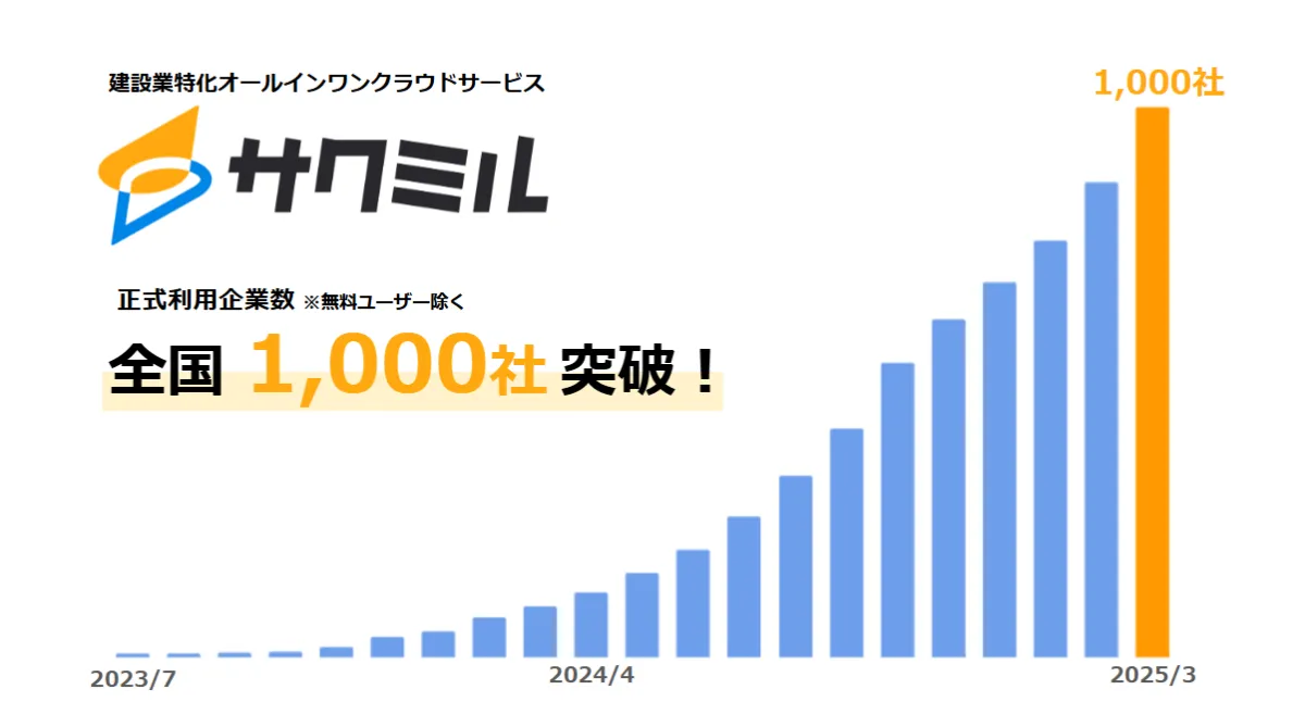 株式会社プレックスが提供する「サクミル」は、建設業向けのクラウドサービスとして、正式リリースから1年9ヶ月で1,000社を超える企業に導入されています。この急成長は、建設業界のデジタルトランスフォーメーション(DX)ニーズの高まりを反映しています。