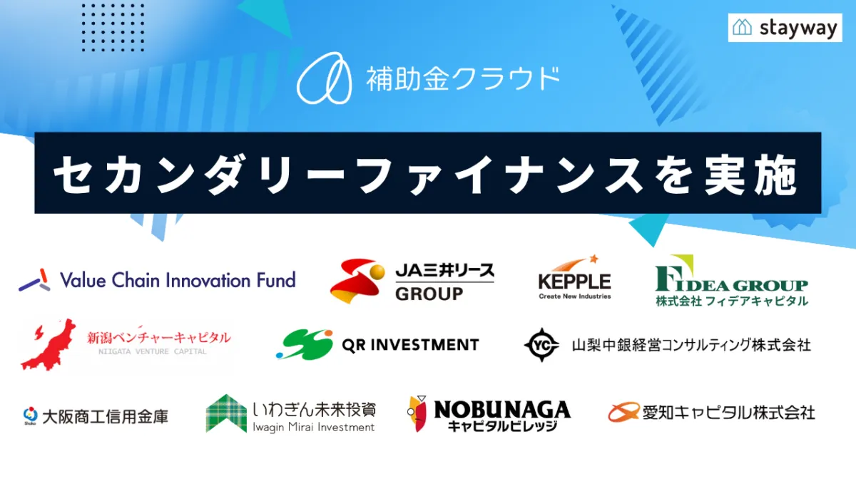 株式会社Stayway(本社:大阪府大阪市)が運営する「補助金クラウド」は、補助金活用を通じた中小企業の経営支援サービスを展開しており、セカンダリーファイナンスを実施したことを発表しました。この施策は、地域金融機関や事業会社、ベンチャーキャピタルを引受先として行われ、同社の成長投資インフラを強化することを目的としています。