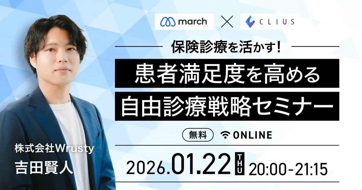 2026年1月22日(木)20:00より、「保険診療を活かす!患者満足度を高める自由診療戦略セミナー」が開催されます。このセミナーは、株式会社Wrustyと株式会社Donutsの協力により、保険診療を主とする医療機関に新たな収益源と患者満足度を向上させる戦略を提供するためのものです。