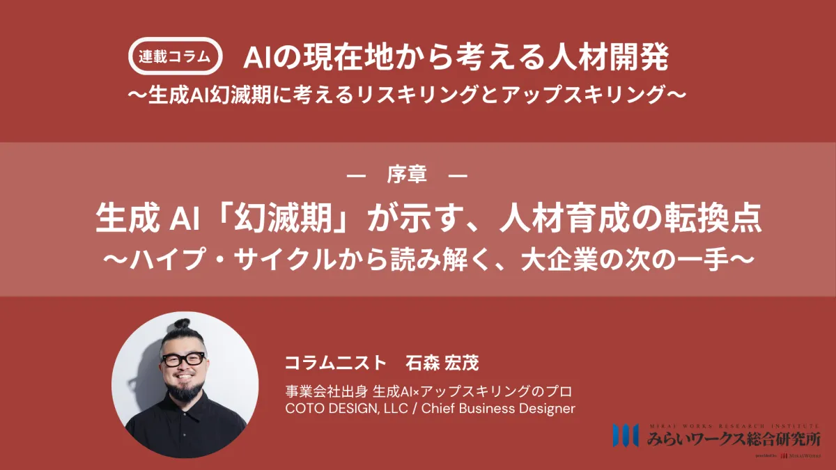 株式会社みらいワークスは、2022年に設立したみらいワークス総合研究所を通じて、企業向けの新たなAI人材育成戦略コラムを発表しました。この新しい連載は、2025年11月よりスタートし、「AIの現在地から考える人材開発 ~生成AI幻滅期に考えるリスキリングとアップスキリング~」というタイトルで展開されます。