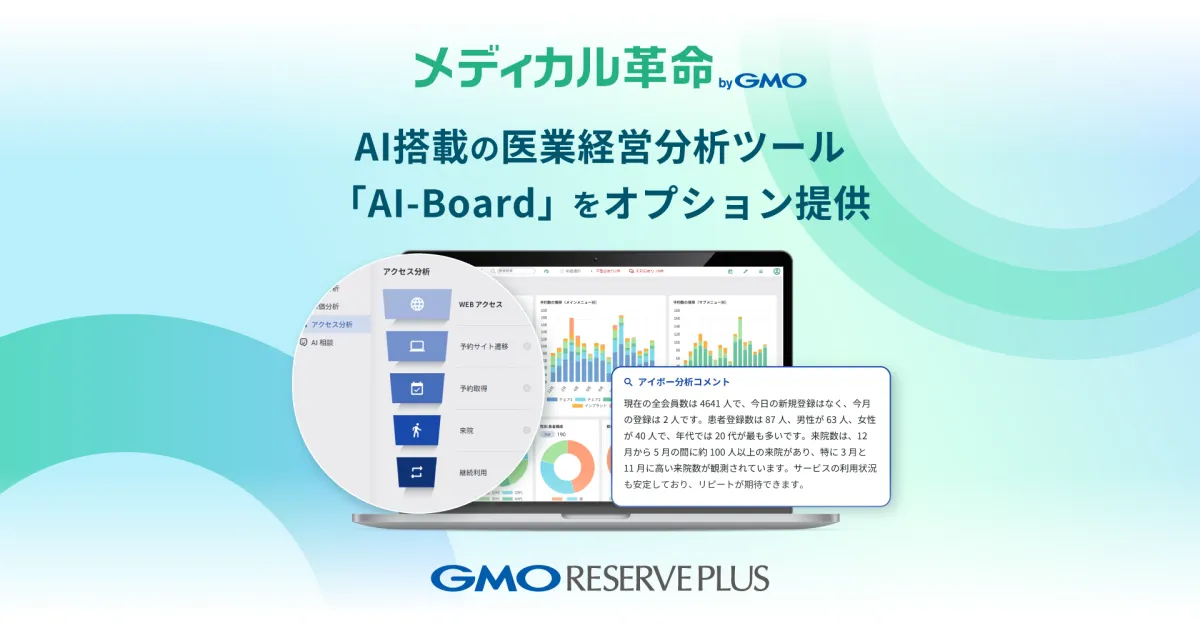 2025年5月12日、GMOリザーブプラス株式会社が医療機関向けに新たなサービス「AI-Board」を提供開始する。これは、医療特化型予約管理システム「メディカル革命 by GMO」のオプションサービスであり、AI技術を用いて医業経営の分析と改善提案を行うツールだ。医療機関における各種経営指標を自動で分析し、戦略的な経営判断をサポートする。