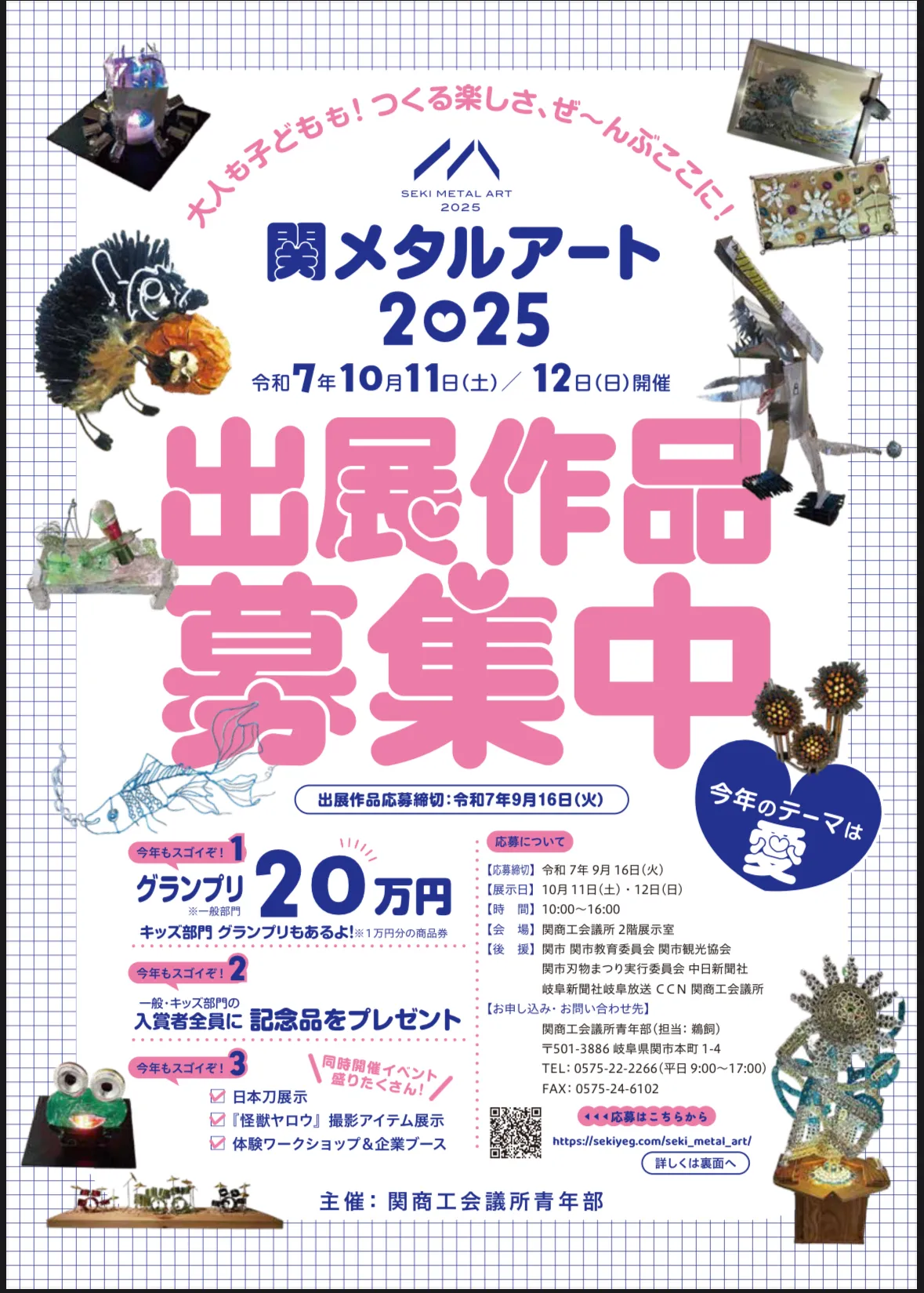 「関メタルアート2025」は、関市の刃物まつりと同日に行われ、地域の誇る craftsmanshipをアピールする絶好の機会です。この日、国内外からの多くの来場者に出会えるチャンスを生かし、刃物文化を広く伝える役割を果たします。出展作品には、廃材を利用したメタルアートなど、創造的な作品が集まります。
