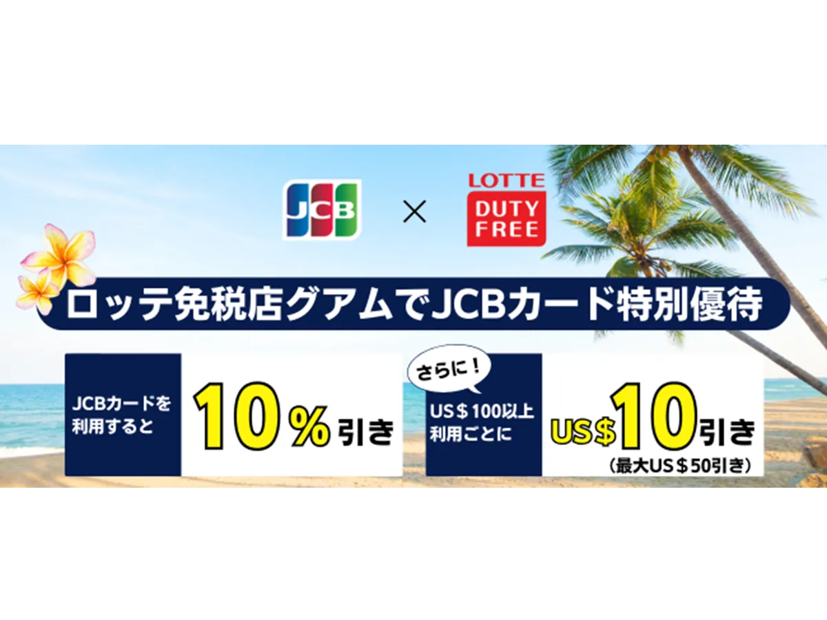 株式会社ジェーシービー(JCB)は、ロッテ免税店グアムとの提携により、2025年10月1日(水)から2026年1月31日(土)まで、特別優待キャンペーンを実施します。このキャンペーンでは、グアム国際空港にあるロッテ免税店でJCBカードを利用することで、店頭価格から10%割引が受けられ、さらにUS$100以上のご利用に対しては最大US$50の追加割引が適用されます。
