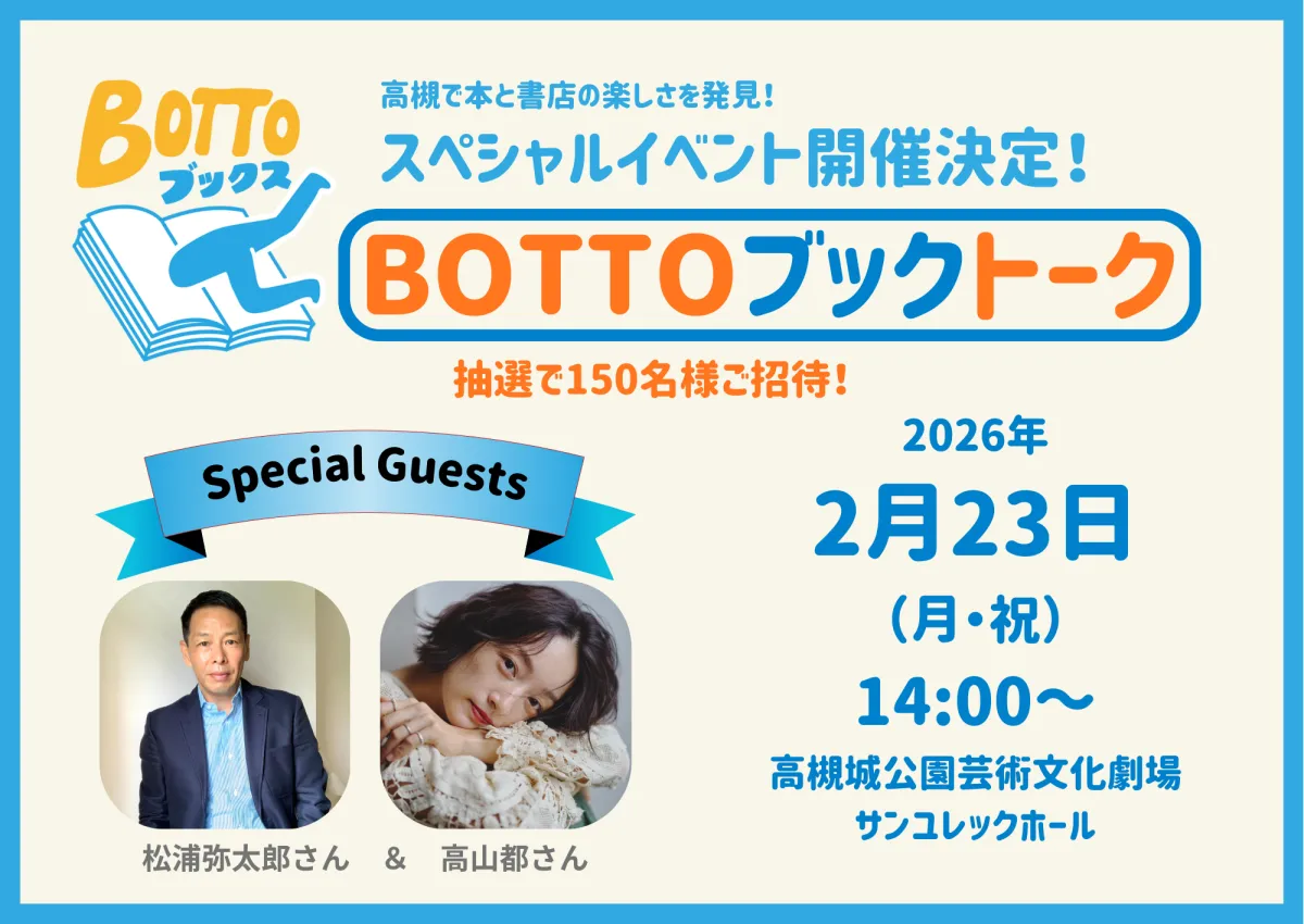 この「BOTTOブックトーク」は、高槻市と4つの書店が共に企画した「BOTTOブックスキャンペーン」の一環で、街の書店に新しい風を吹き込む試みです。商業的な一面だけでなく、「本のまち」としての高槻の魅力を再確認させてくれることでしょう。