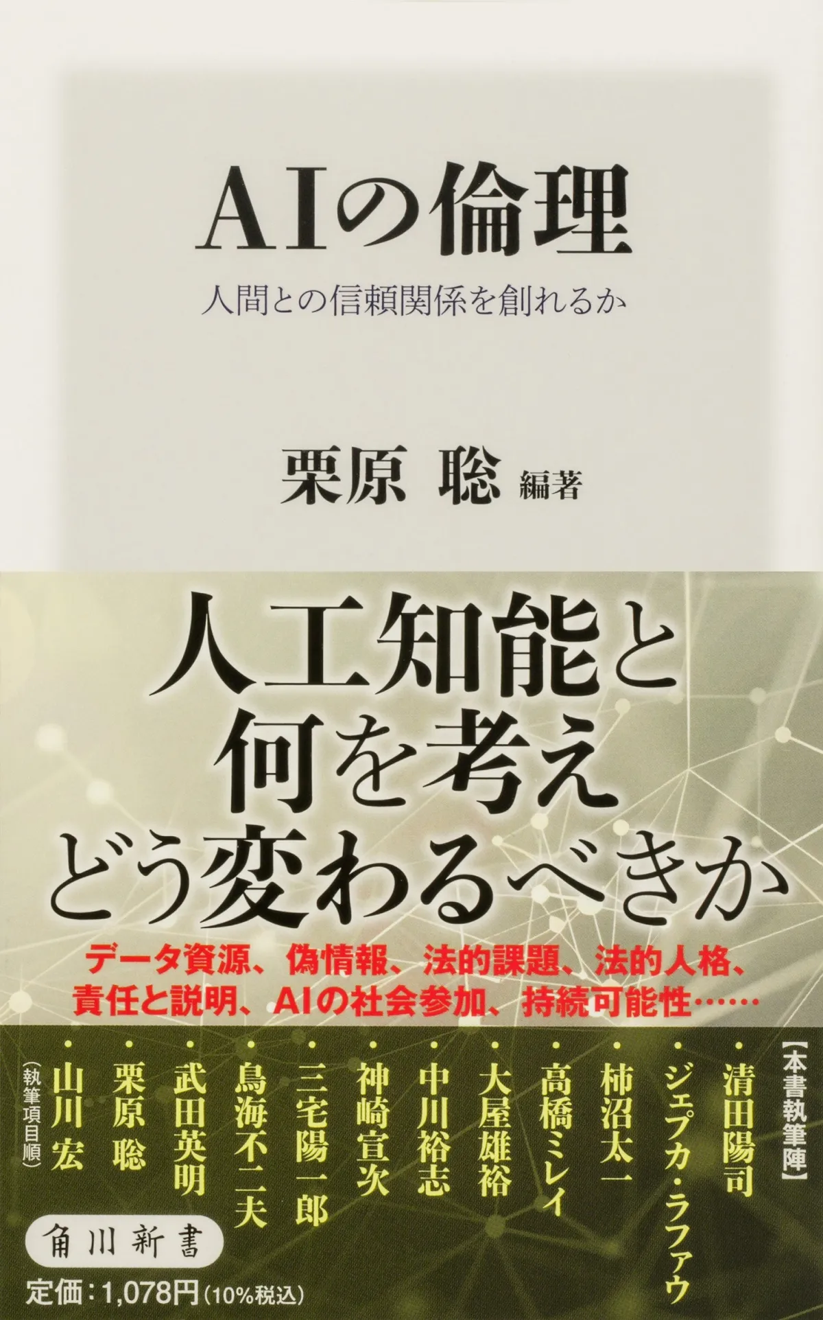 一つ目の作品は、栗原聡編集による『AIの倫理 人間との信頼関係を創れるか』です。この書籍は、AIと共生する時代における倫理的課題を幅広く取り上げています。著者たちは、AIの進化によって生じる様々な問題に立ち向かうための論考を行っています。例えば、自動運転車の事故に際しての責任の所在、AIによる創作物の著作権の問題、さらにはAIが脆弱性を突く可能性など、多岐にわたるテーマが扱われています。
