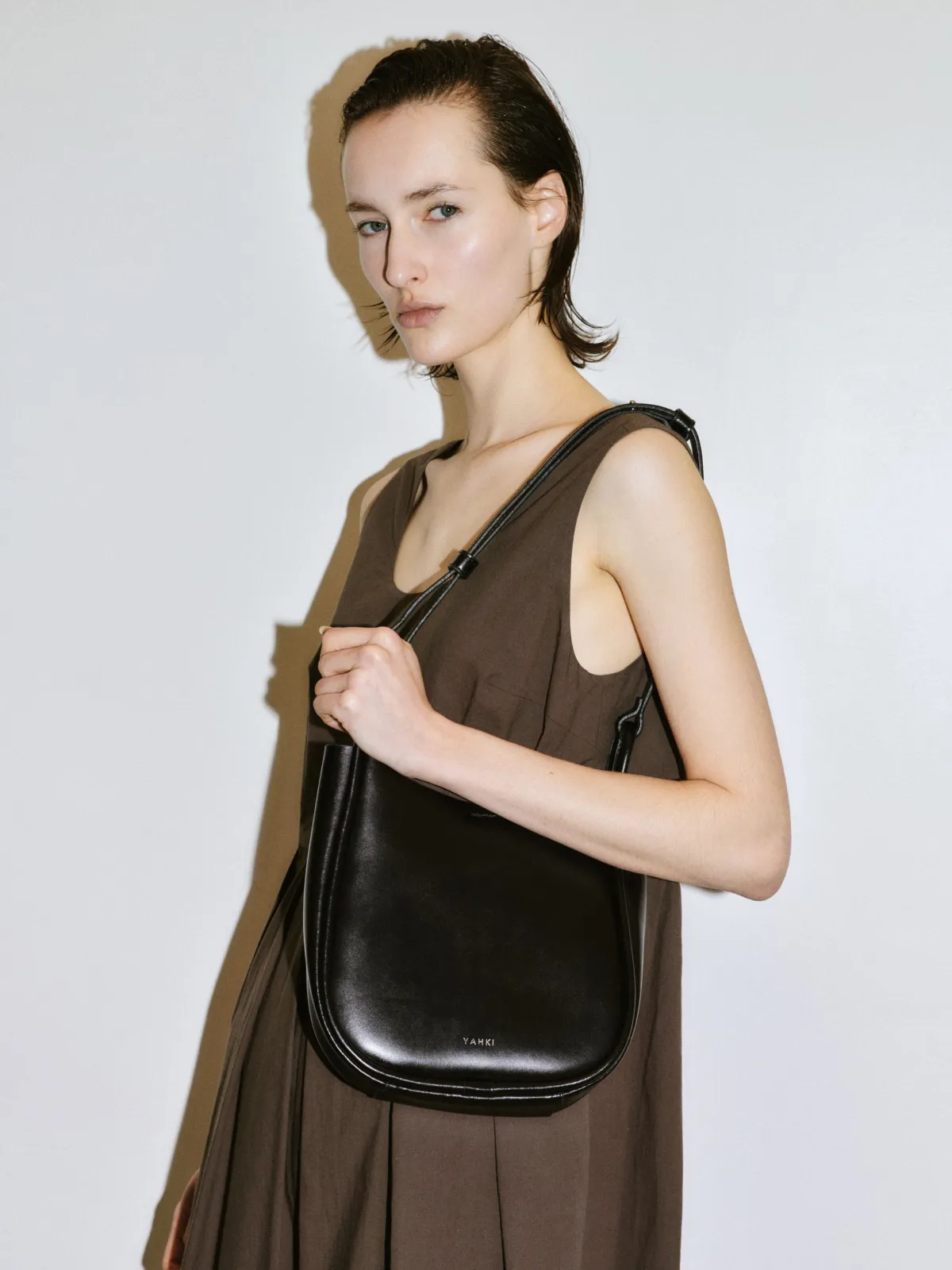 コレクションのLOOKでは、素材感やフォルムの美しさが際立つスタイリングを通じて、YAHKIが提示する2026年春夏のムードが表現されています。シンプルでありながらも、さりげなくスタイルを引き立てるバッグが日常に溶け込みます。