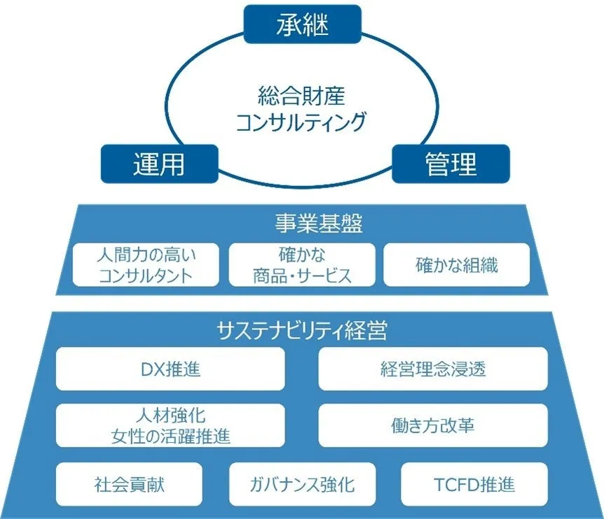 当社は、人的資本、即ち社員の能力や人間力が企業成長の基盤であると考えています。それにより、より高品質なサービスを提供するため、社員の多様性を尊重し、様々な価値観に応じた財産コンサルティングを推進していきます。このように、人的資本への投資を通じて、サステナビリティ経営を強化し、企業の持続的成長を図っています。