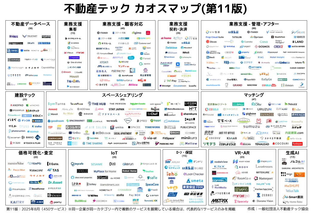 一般社団法人不動産テック協会が、2025年8月に開催された「次世代住宅シンポジウム2025夏」のメインセッションで「不動産テックカオスマップ第11版」を発表しました。このカオスマップは、不動産業界の新しいサービスを一目で把握できる数少ない指標として、毎年多くの企業やメディアに利用されています。