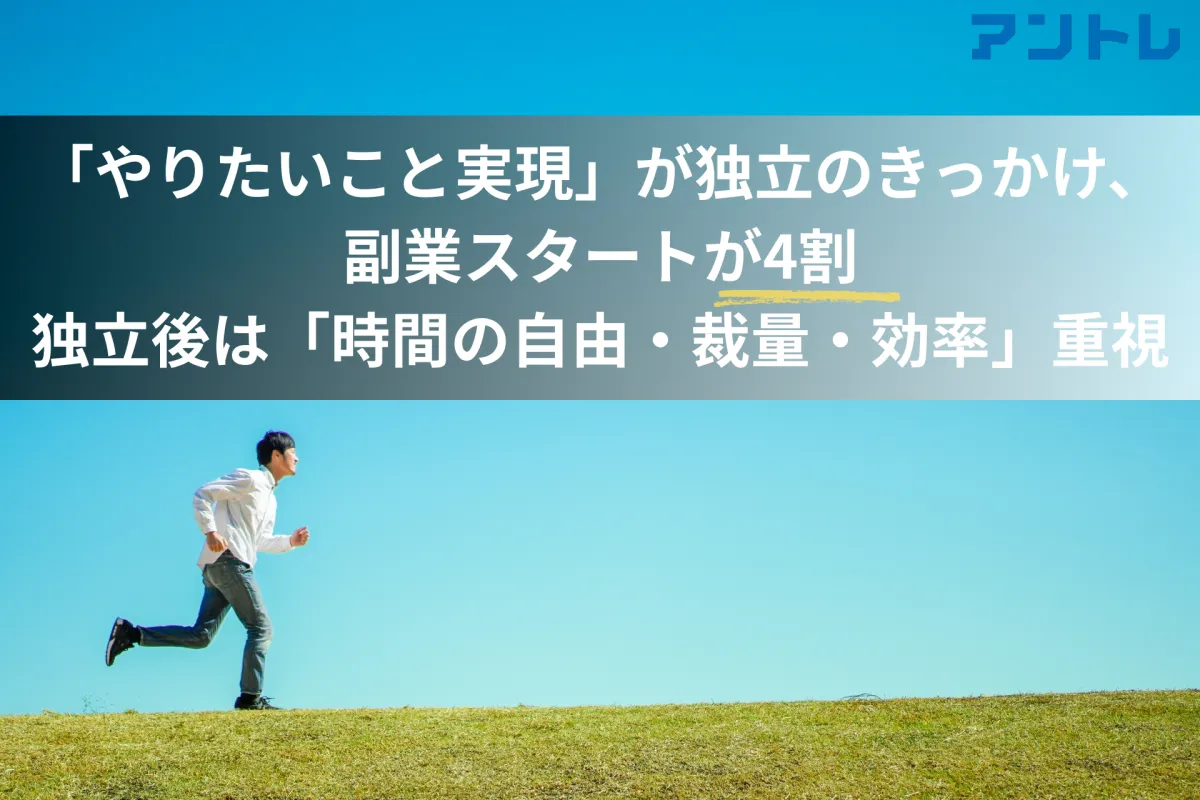 近年、独立・起業に対する関心が高まっていますが、その中でも特に注目されているのが、副業を経て独立を考える人々の増加です。株式会社アントレが実施した調査により、独立を希望する理由や理想の働き方、さらには不安要素について多くの示唆が得られました。