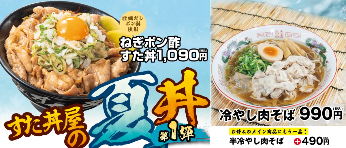 暑い夏がやってきました。特にこの時期、気温が30℃を超える毎日が続くと、食欲がなくなりやすいもの。そんな夏バテに悩む人たちのために、株式会社アントワークスが運営する「伝説のすた丼屋」では、2025年7月18日から夏季限定メニューを発売します。その名も『ねぎポン酢すた丼』と『冷やし肉そば』。どちらも暑さを乗り切るために開発された逸品です。