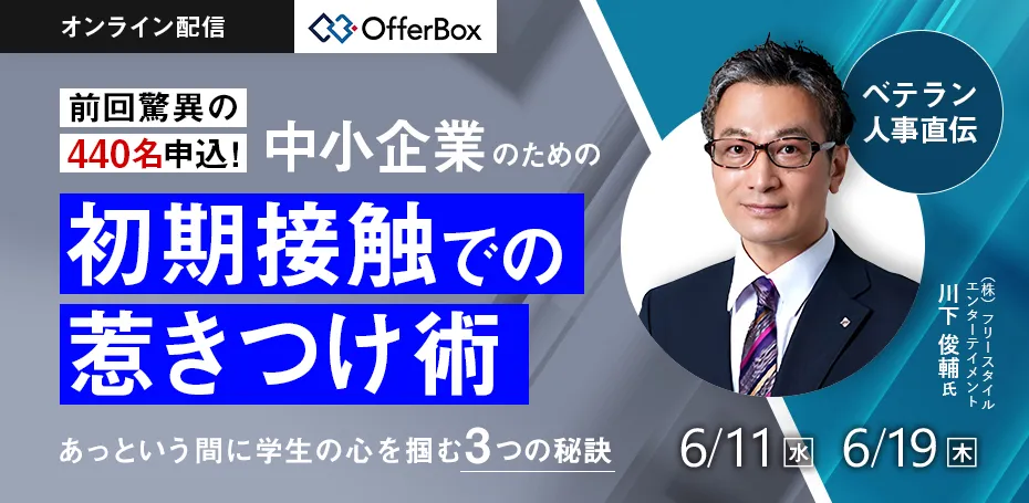 このセミナーでは、初期接触における学生を惹きつけるための具体的なノウハウを解説します。現在の就職活動では、企業が自ら情報を発信し、学生と接点を持つことがますます重要になっています。川下氏は、講義とディスカッションを通じて「今すぐ実践できる」効果的な手法について紹介します。