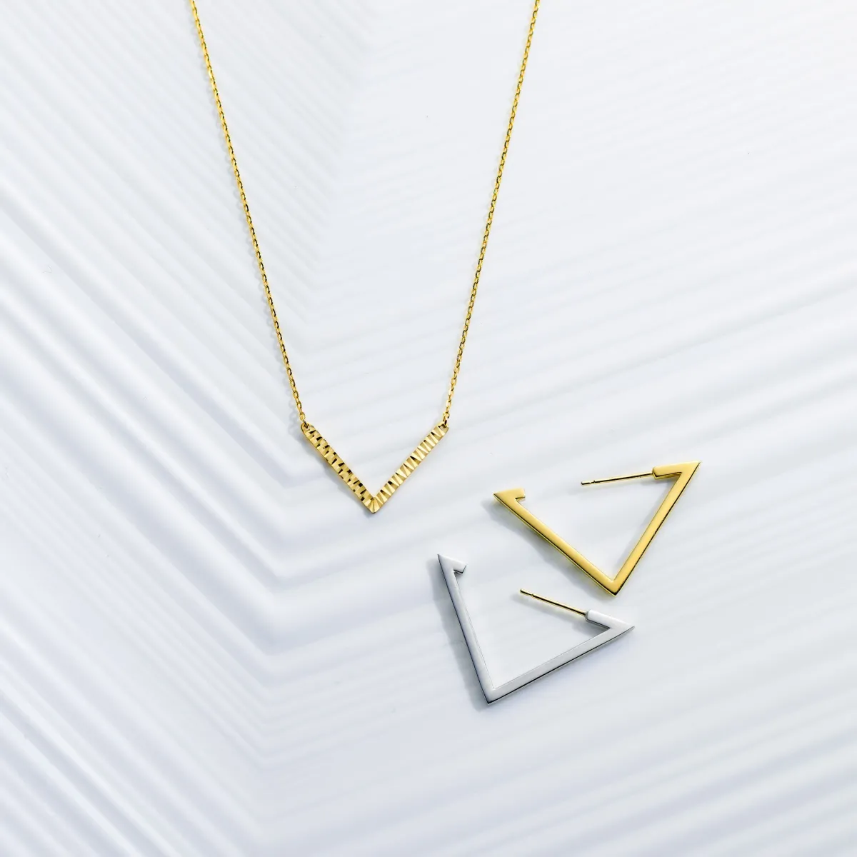 Vラインのデザインは、顔まわりを引き立てる洗練された印象を与え、さまざまなスタイルと調和します。ダイヤモンドの輝きが上質さを演出し、普段使いにも特別な日にも最適です。