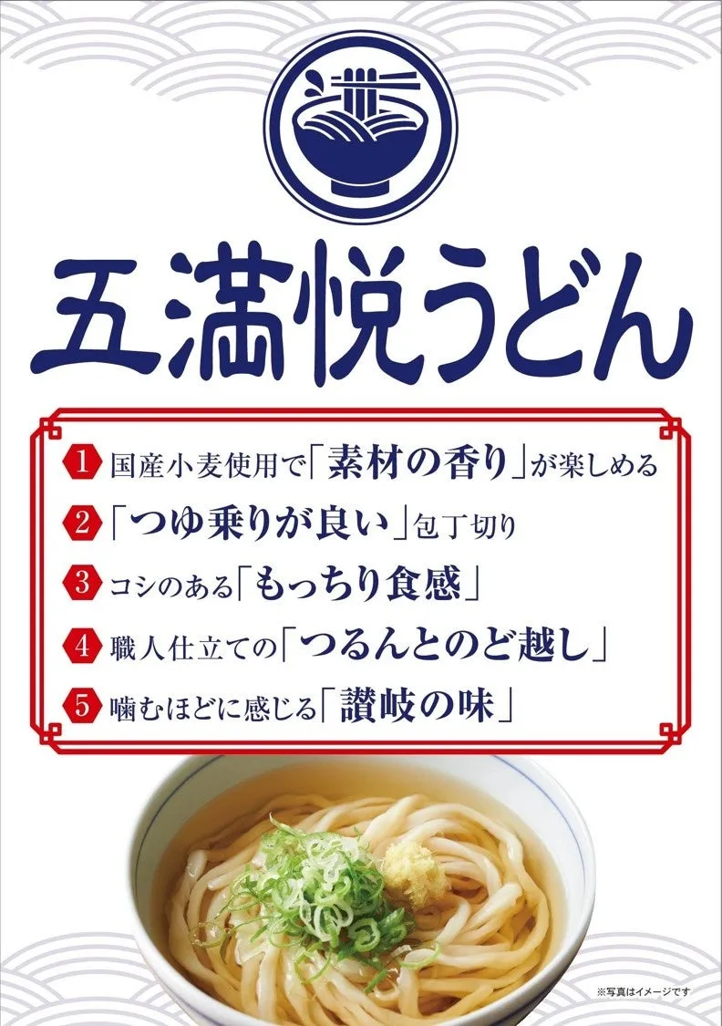 「五満悦うどん」には、最大10種類の豊富なラインナップが揃っており、各店舗の特色に応じた取り揃えも期待できます。ここで紹介するのは、一部の気になる商品です。