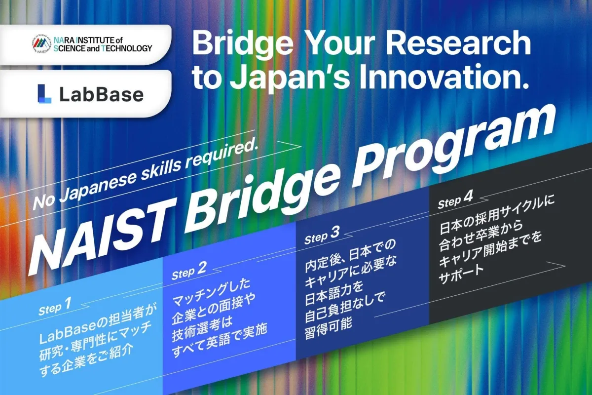 株式会社LabBaseと奈良先端科学技術大学院大学(NAIST)が連携し、理系修士・博士課程の留学生に向けた就職支援プログラム「NAIST Bridge Program」を開始します。この取り組みは、日本の企業において高度な専門性を持つ留学生の採用を促進し、彼らが研究に集中しつつも就職活動をスムーズに行える環境を提供することを目的としています。