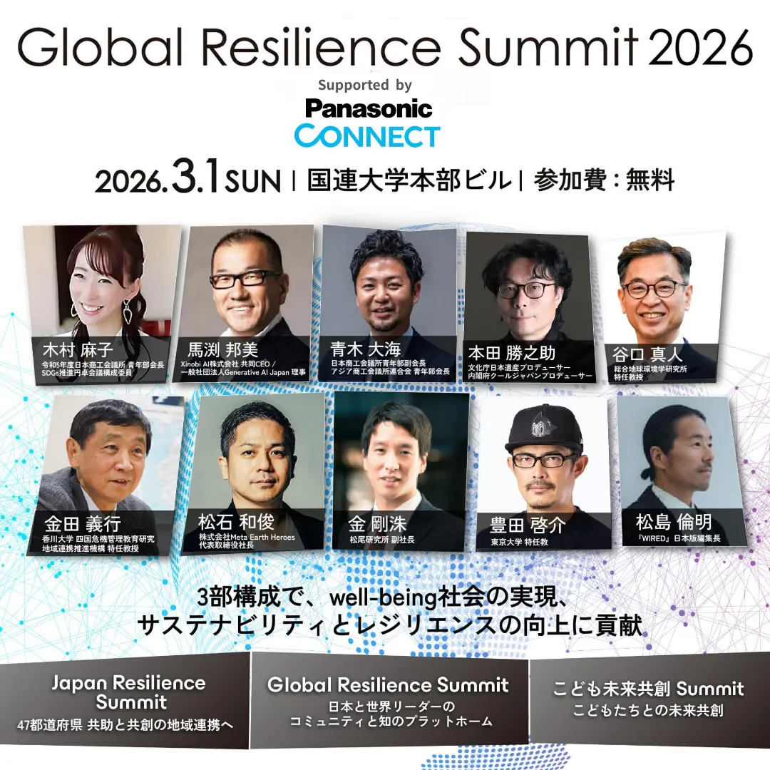 一般社団法人 The Global Resilience Summit(GRS)が日本で開催する「Global Resilience Summit 2026」は、2026年3月1日(日曜日)、国連大学本部ビルにて行われることが決定しました。このサミットは、サステナビリティとレジリエンスの向上をテーマにし、日本および世界のさまざまな分野のリーダーや専門家が集まる国際的なカンファレンスです。また、パナソニック コネクト株式会社がメインスポンサーとして加わることも発表され、日本発の「レジリエンス×テクノロジー」を世界に広める大きな機会となります。