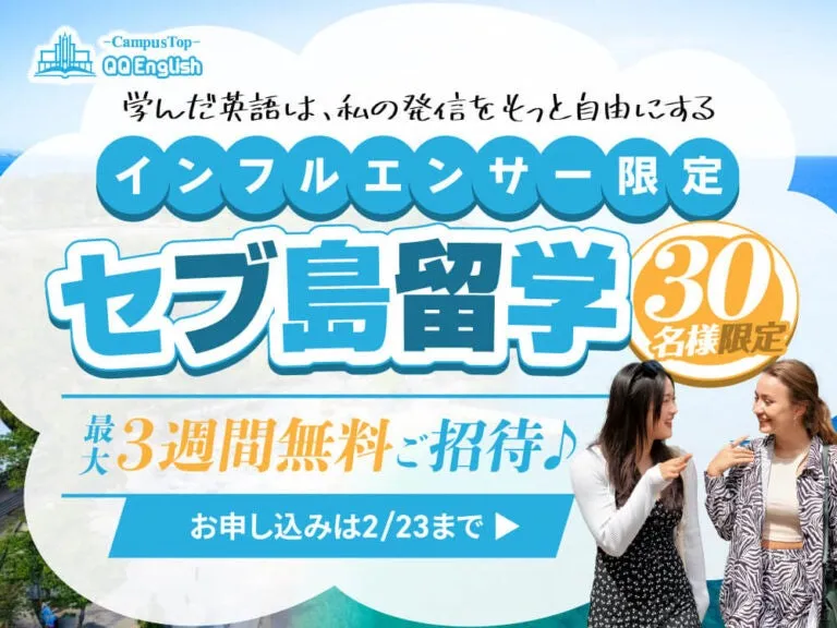QQEnglishは「To be the gateway to the world」というミッションのもと、英語学習の機会を提供するオンライン英会話サービスおよびセブ島での語学学校を運営しています。これまでに70万人以上が利用した実績があります。さらに詳しい情報や申し込みは、公式サイトをご確認ください。