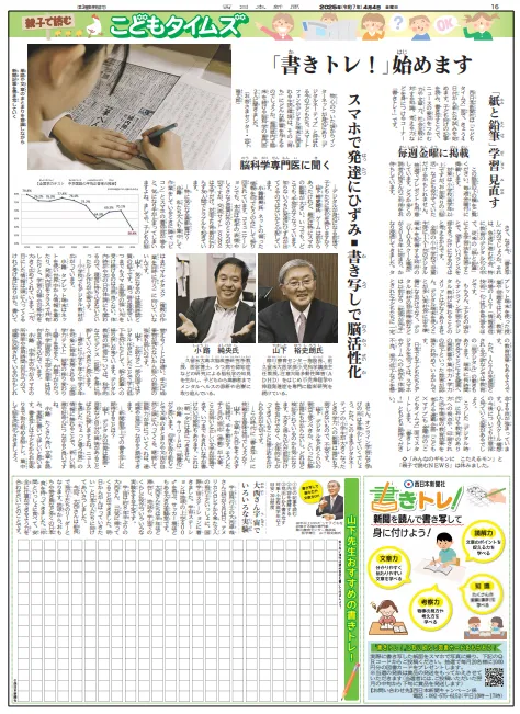 さらに、「書きトレ!」とは別に、同じ「こどもタイムズ」面で新たな連載企画「こども×マナブ」もスタートします。この企画では、デジタル教育の現状や印刷された活字情報の教育的効果に関する視点を探求していきます。「書きトレ!」との併せて、多くの知識を得る手助けとなるでしょう。