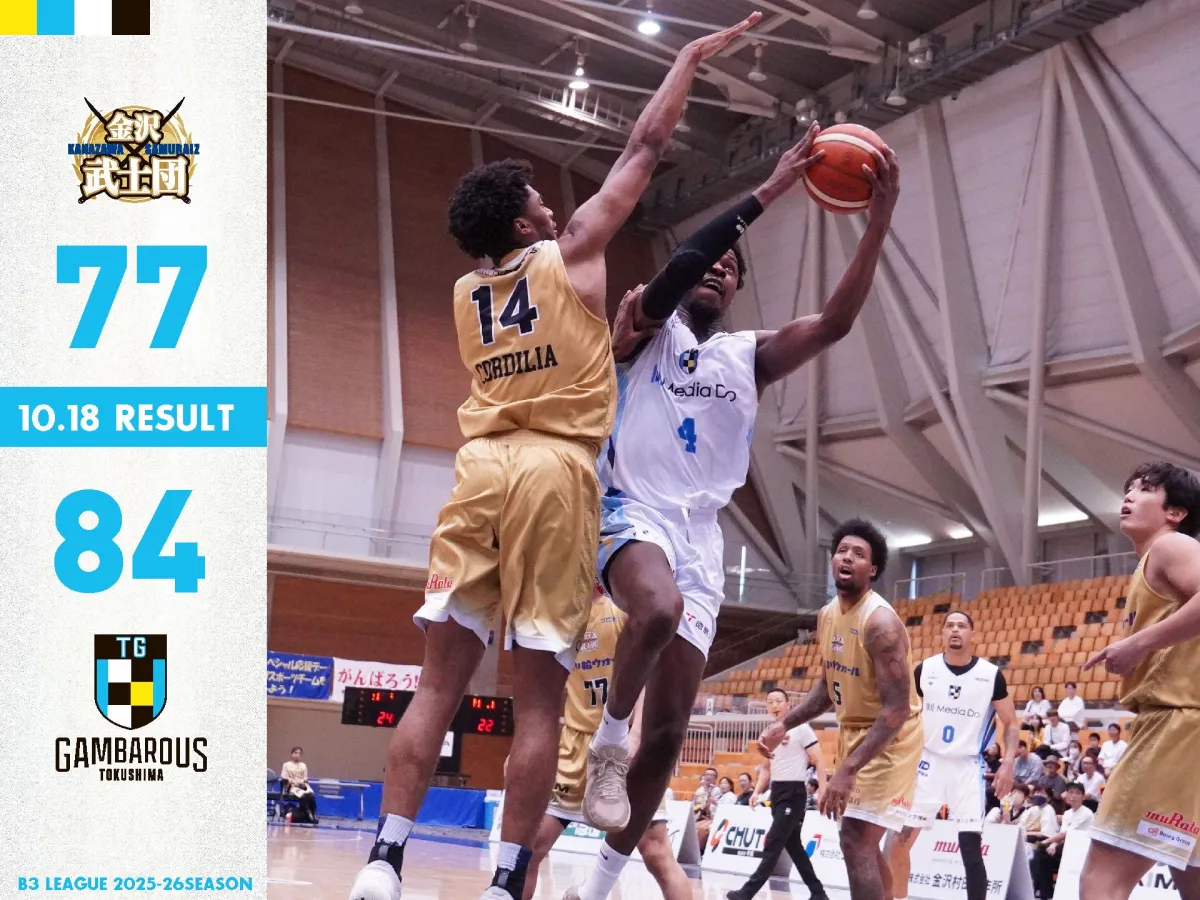 2025年10月18日、B3リーグ2025-26シーズン第4節の試合がいしかわ総合スポーツセンターで行われました。本試合では、徳島ガンバロウズが金沢武士団と対戦し、最終的に84対77で勝利しました。これにより、徳島は見事7連勝を達成しました。