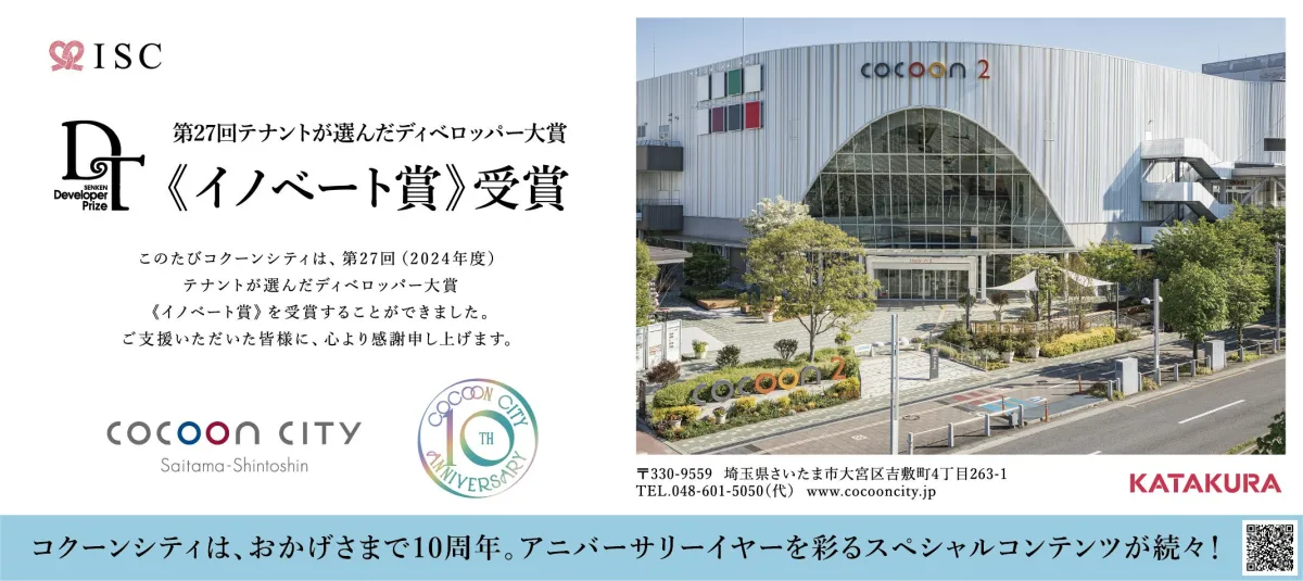 最近、埼玉県さいたま新都心に位置する「コクーンシティ」が、繊研新聞社が主催する第27回テナントが選んだディベロッパー大賞で「イノベート賞」を受賞した。この賞は、全国の実績あるテナントが評価し、選出するもので、コクーンシティはその評価に何らかの新たな価値を提供することができた証だ。