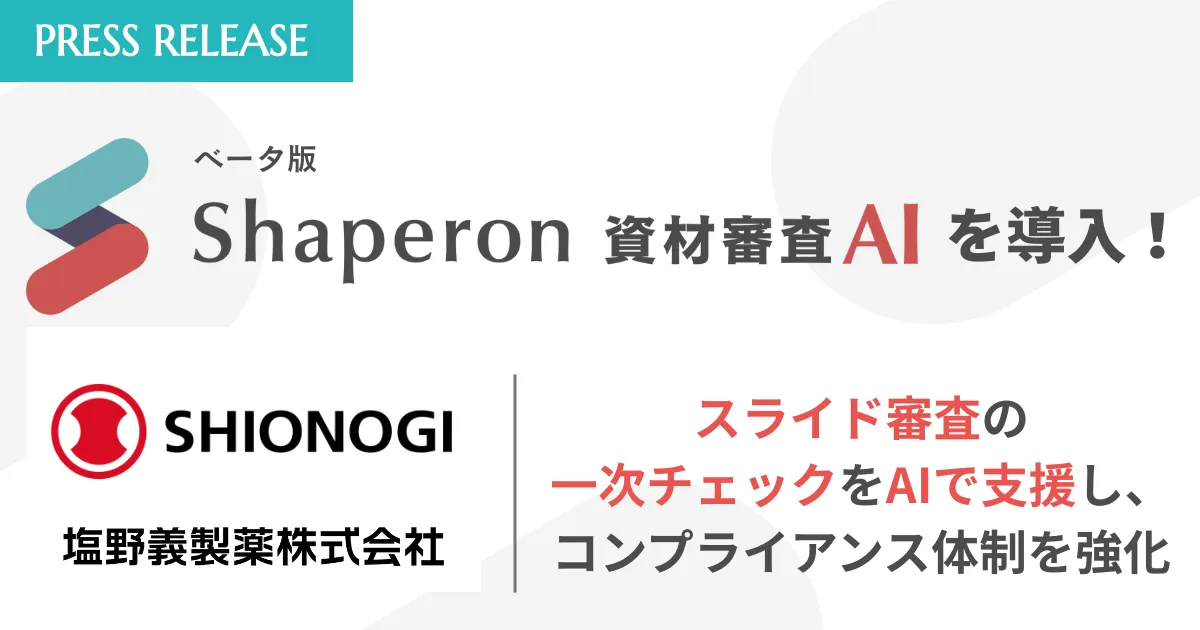 最近、塩野義製薬株式会社が、その業務効率化を目指して東京都に本社を置く株式会社シャペロンが提供する「Shaperon資材審査AI(ベータ版)」を導入しました。この新たなAIシステムは、製薬業界のプロモーション資材に特化したもので、AIが自動的に資材を審査し、審査プロセスの品質やリードタイムを向上させることを目的としています。