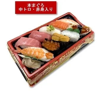 - - 内容: 中トロ、赤身、ずわいがに、いくらなど10種類