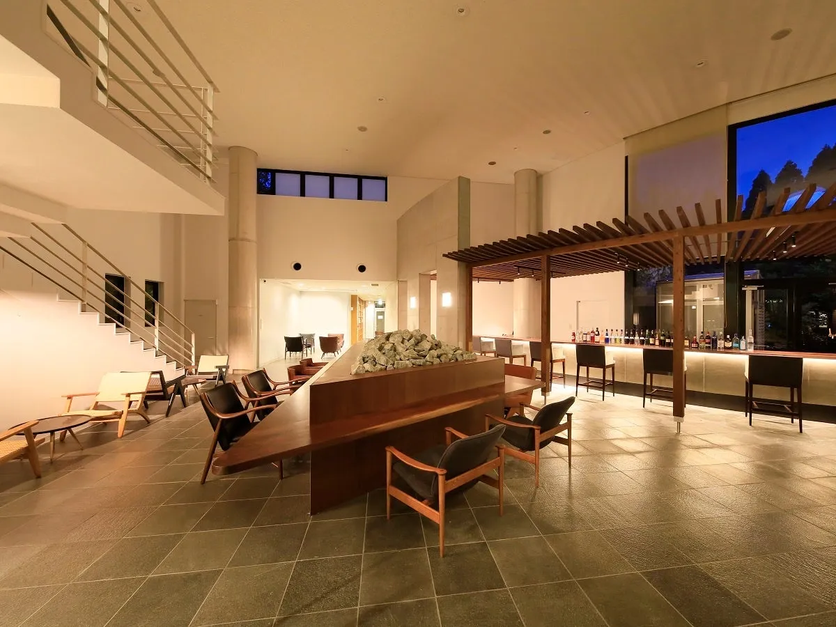 バーラウンジでは、ジャズの音色に包まれた落ち着いた空間で、ウェルカムドリンクやノンアルコールのカクテルを楽しむことができます。夜には、佐賀の地酒や抹茶を使ったカクテルなど、ユニークな飲み物が提供され、昼と夜で異なる雰囲気を楽しむことができます。