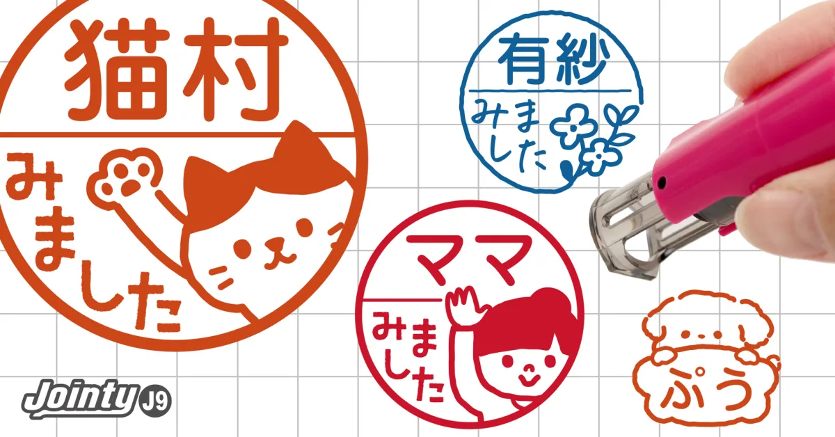 今回の新デザインは、小学生の保護者や先生、さらには職場でスタンプを使う方々に向けたもので、多様なシーンで使用できることを意識しています。「みました」「OKです」などのフレーズが入ったデザインに加え、名前だけを入れられるタイプのスタンプも揃っており、用途に応じて選ぶことが可能です。
