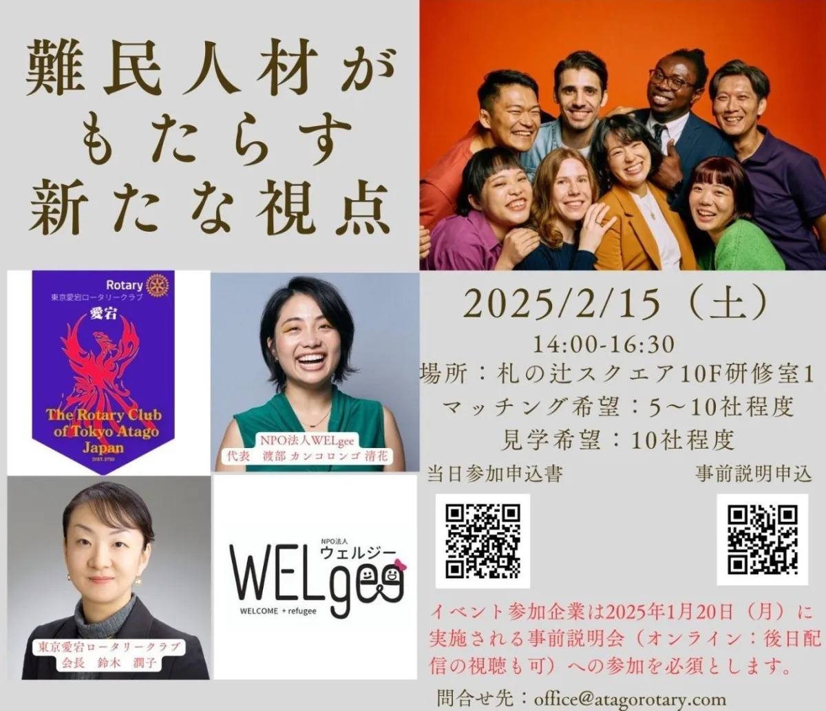 日本における難民問題が注目を集める中、特に人材としての可能性に富んだ難民たちの活躍を促進するイベントが2025年2月15日(土)、東京で開催されます。主催はNPO法人WELgeeおよび東京愛宕ロータリークラブで、国際的な協力を背景にしたこの試みは、日本の企業に新たな価値を提供することを目指しています。