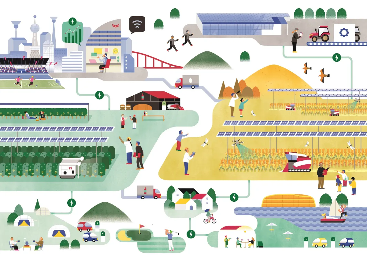 住民による営農が行われる農地の上に設置される太陽光発電設備は、地域経済の活性化にも寄与します。ヤンマーは2026年から、これらの発電設備をもとにしたエネルギー事業を開始する予定です。発電した電力は地域に供給され、エネルギーの地産地消を通じて環境への配慮を深めていきます。