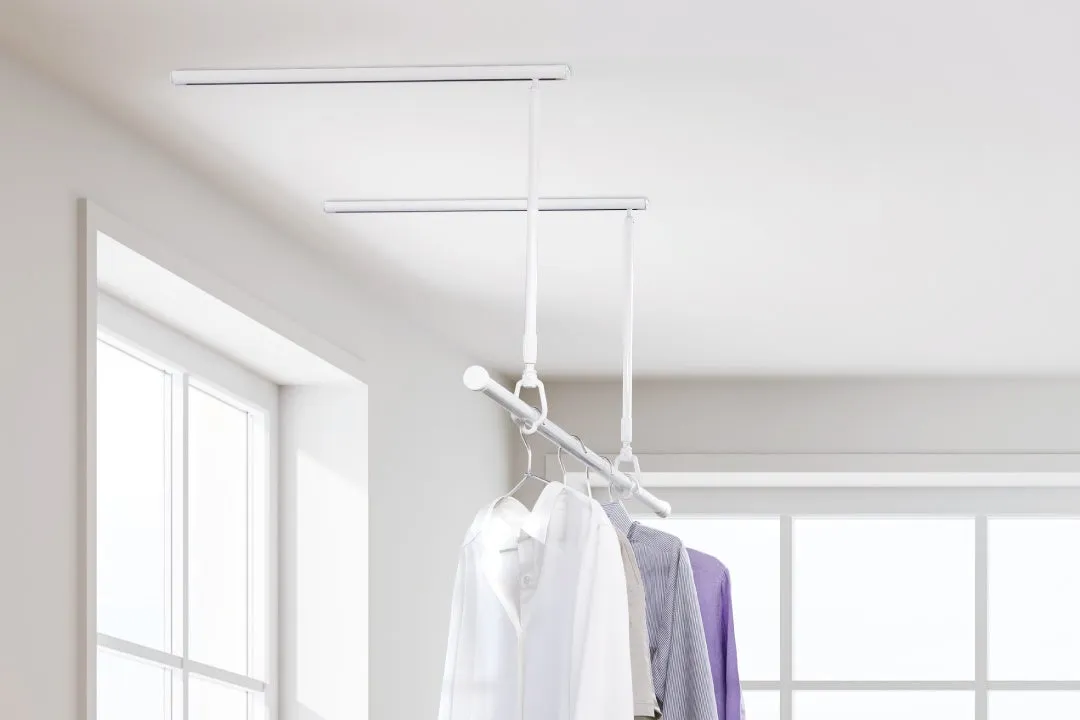 TAR5686の最大の特徴は、物干し竿を取り付けたまま壁際にスライドできることです。これにより、廊下やリビングの通行が妨げられることなく、広々とした空間を保つことができます。限られたスペースを有効に活用することができ、使うときだけ干して、使わないときにはスッキリとした空間を維持できるのです。