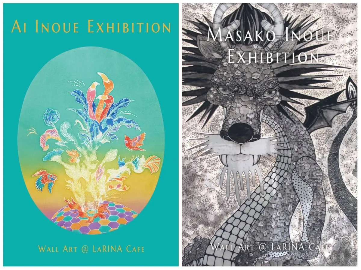 金沢市香林坊にある【La RINA】カフェフロアでは、月替わりでアートギャラリーが展開されており、現在は二人の作家による個展が注目されています。ひとつは染織作家の井上 藍さんの『井上 藍 展』、もうひとつは九谷焼作家の井上 雅子さんによる『井上 雅子 展』です。