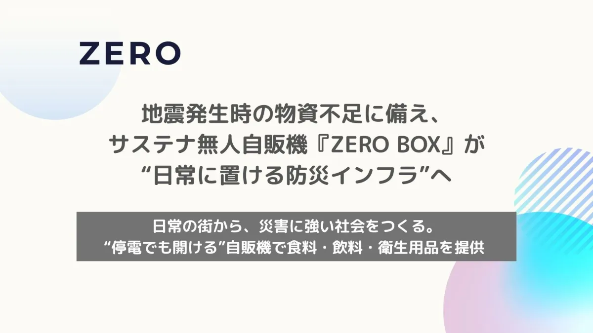 また、ZEROは『ZERO BOX』の設置初期費用を無料とし、特に災害リスクの高い地域への導入を強化するキャンペーンも展開しています。この取り組みは、水害や地震リスクの高い地域に特に重きを置いており、備蓄品として飲料水や保存食、衛生用品など需要の高い商品を提供することを目指しています。