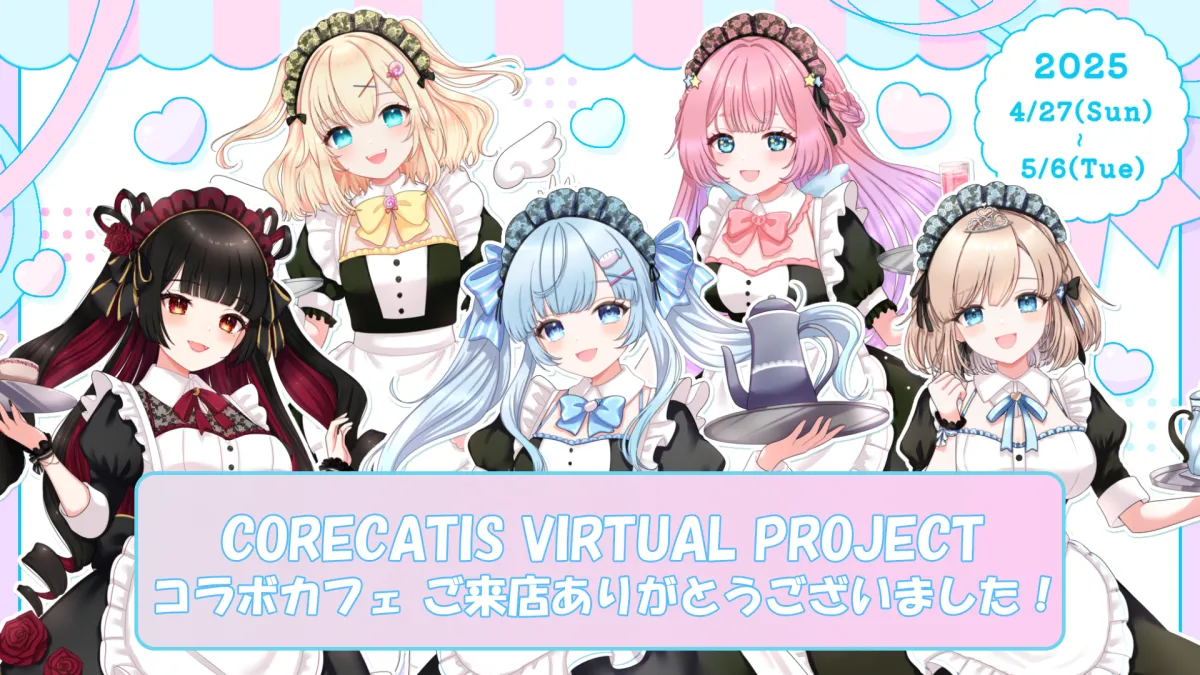 2025年4月27日から5月6日まで、株式会社コレカティスが運営する「CORECATIS VIRTUAL PROJECT」に関連する初のコラボカフェイベントが開催されました。このイベントは、参加者に独自の世界観を体験していただくことを目的とし、全日程を通じて延べ300名以上のお客様にご来場いただきました。来場者の皆様からの温かいご声援があり、お陰様でこのイベントは多くの方々にとっても記憶に残る素晴らしい企画となりました。