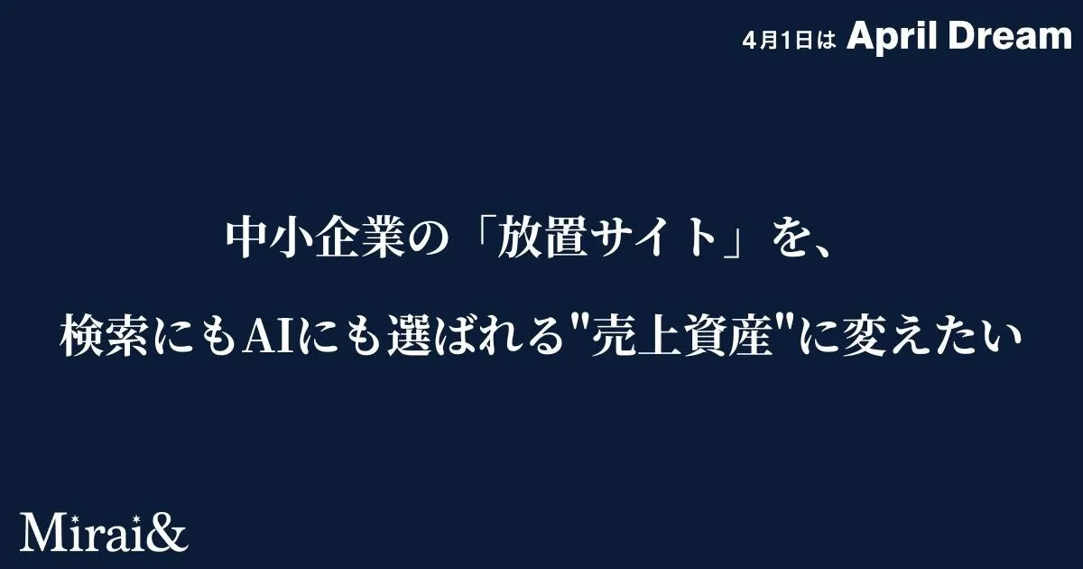 April Dreamプロジェクトに寄せて、Mirai&は中小企業の夢の実現に全力で取り組んでいます。