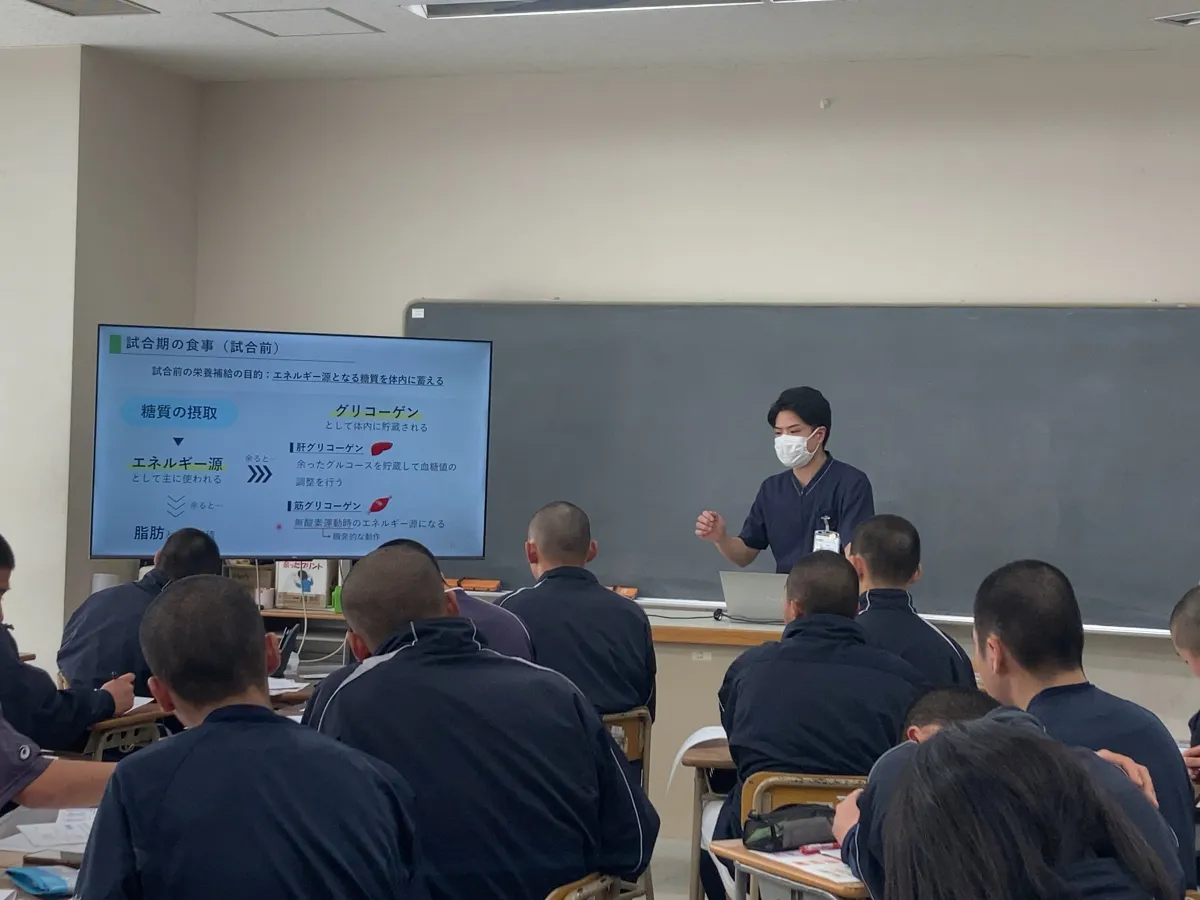 2回目のセミナーでは、再度体組成と握力の測定が行われ、補食に関する実践的なワークショップや「試合前・試合中・試合後の食事のとり方」をテーマにしたセミナーが実施されました。この双方向型のセミナーを通じて、生徒たちは具体的な食事の内容やタイミングを学び、自分に合った栄養戦略を考える大きな一歩を踏み出しました。