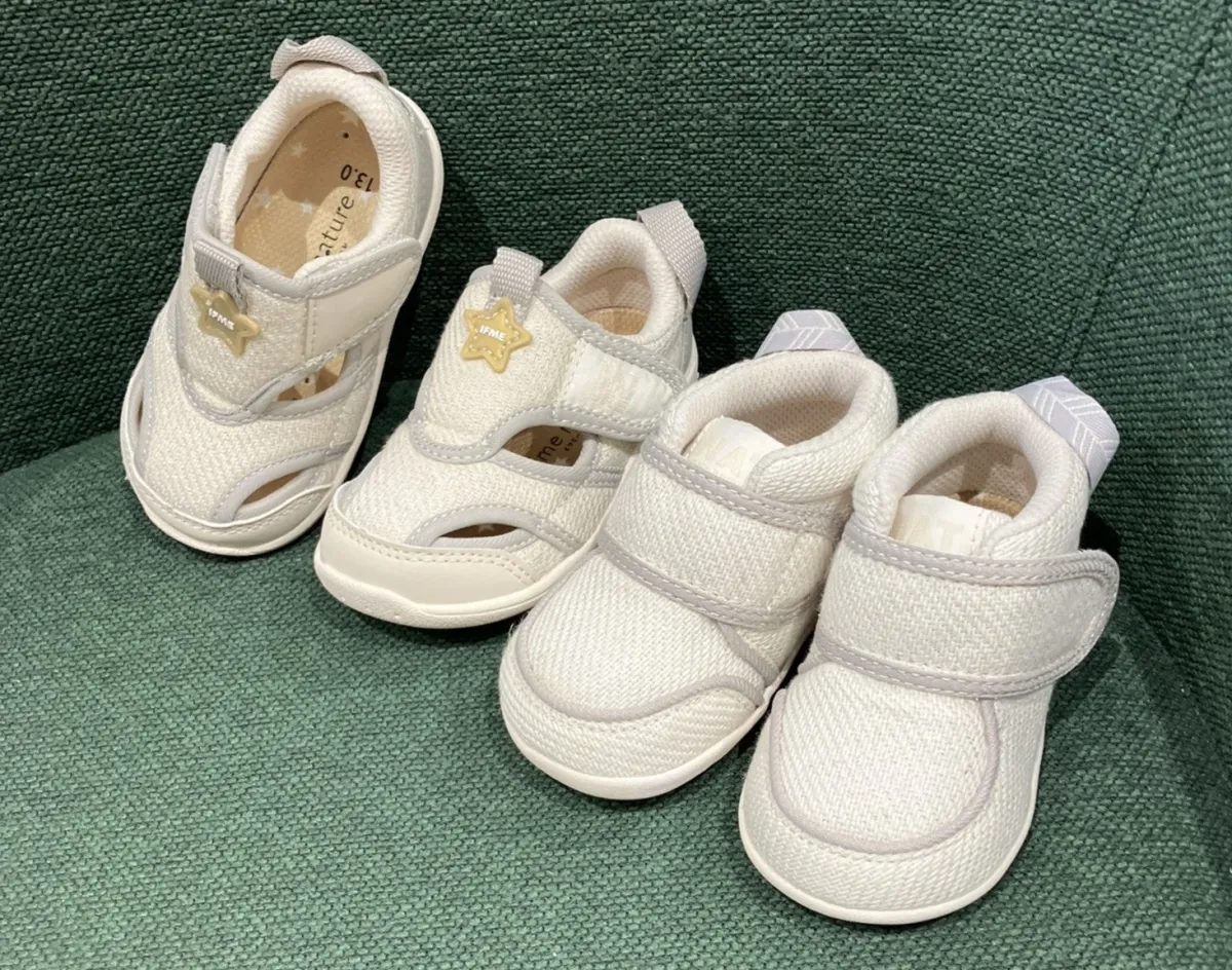 今回のサマーシューズに加えて、継続販売中のヨシ素材を用いたファーストシューズも紹介します。「ifme nature ラメヨシ素材 ファーストシューズ」は、成長の早い「ヨシ」を使ったオリジナル生地で作られており、贈り物にぴったりです。こちらも同様に高品質な機能が搭載されています。