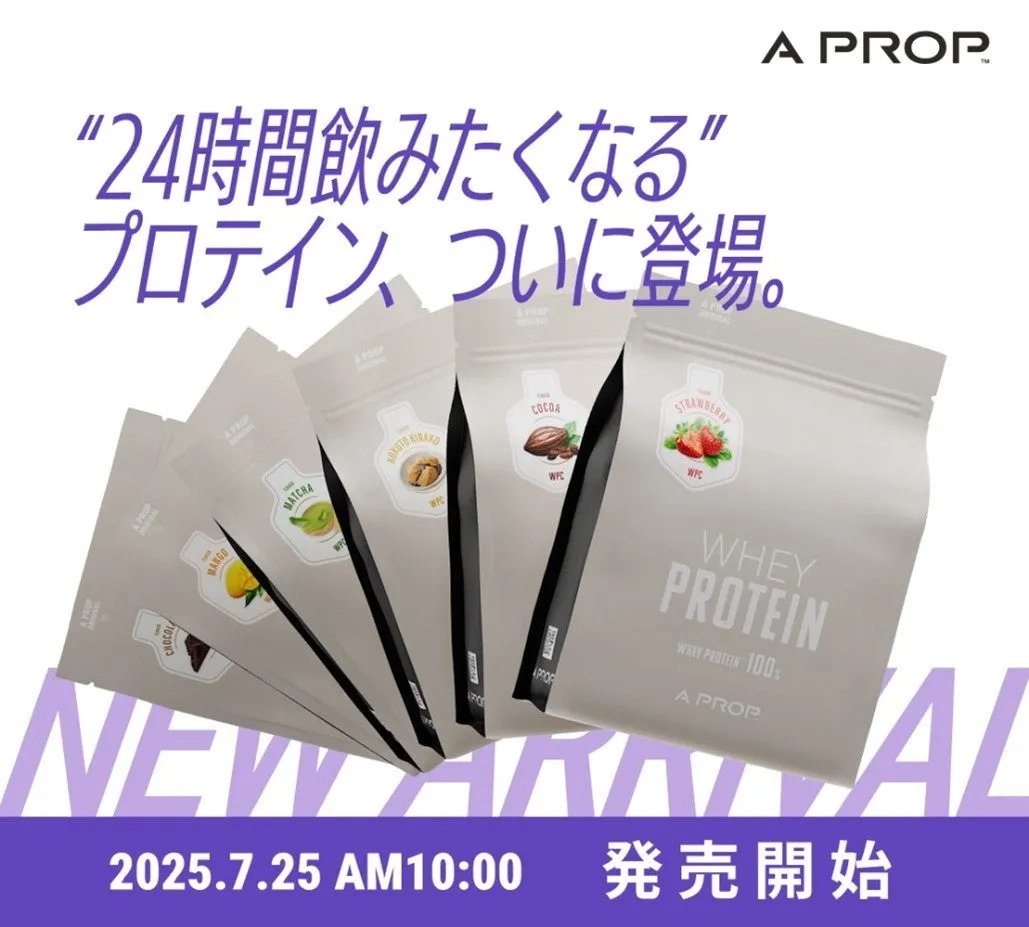 株式会社Fast Fitness Japanが手掛けるフィットネスジム「ANYTIME FITNESS(エニタイムフィットネス)」は、公式オンラインストア「A PROP(ア プロップ)」にて新しいプロテイン「A PROP WHEY PROTEIN」を7月25日(金)から販売開始します。このプロテインは、“24時間飲みたくなる”というコンセプトのもと開発されており、フィットネスを楽しむ全ての人々に向けて提案されています。