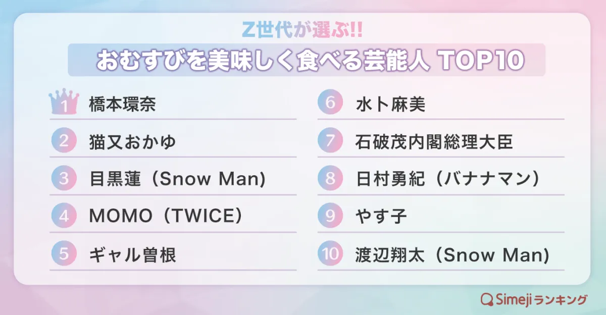 Z世代が選ぶ!おむすびを美味しく食べる芸能人TOP10