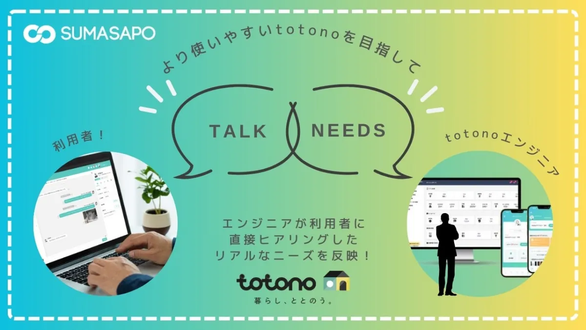 不動産賃貸マーケットでテクノロジーを駆使し、業務の効率化と入居者の満足度向上を目指している株式会社スマサポが、アプリ『totono』のUX改善に向けた新たな取り組みを発表しました。この取り組みは、エンジニアと現場の利用者がダイレクトにコミュニケーションを取ることから始まりました。これにより、実際のニーズとシステム設計とのギャップを埋める新たなステップが生まれました。