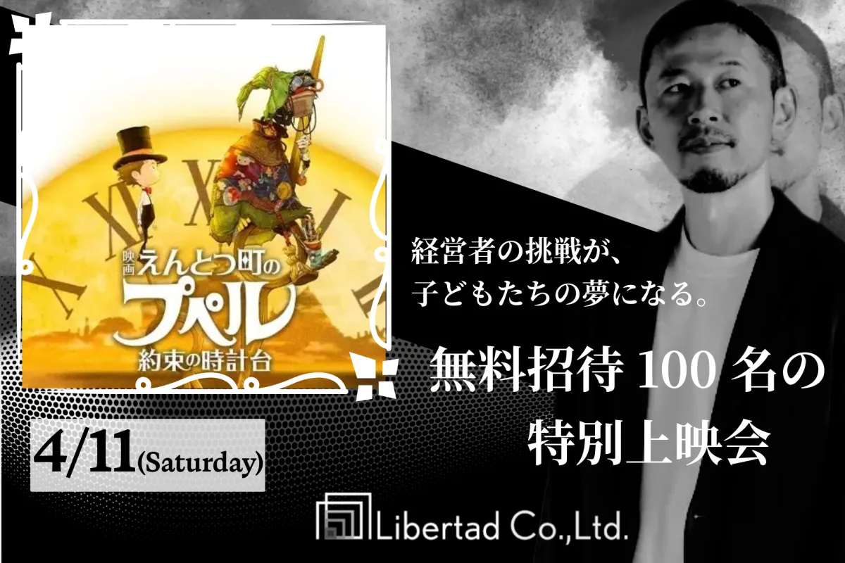 株式会社リーベルタッドは、2026年4月11日(土)に千葉県成田市の成田HUMAXシネマズで開催される『映画 えんとつ町のプペル 〜約束の時計台〜』の貸切上映会に協賛します。これにより、100名の子どもたちが無料で映画鑑賞できる機会を提供します。