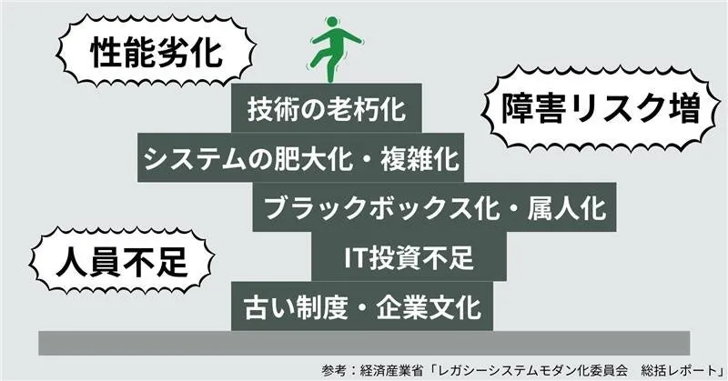 レガシーシステムの背景には、次のような課題が存在する。