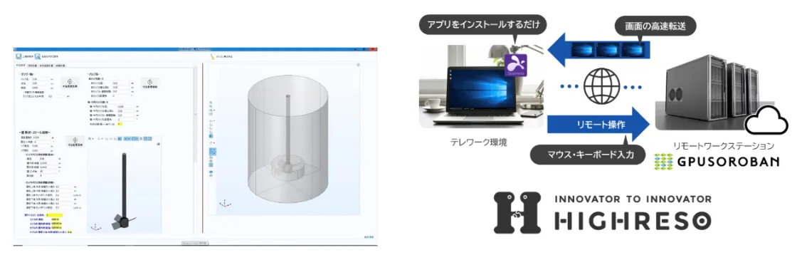 ハイレゾの提供する「GPUSOROBANリモートワークステーション」を活用することで、高性能なPC環境を整える必要がなくなります。従来のように専用アプリをローカルPCにインストールするのではなく、クラウド上でサービスを利用できるため、自宅や工場など、どこからでも簡単に運用開始できます。これにより、多くの製造現場で高性能な解析環境の導入が可能となります。