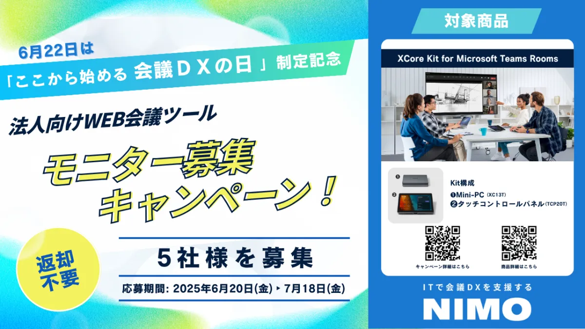 ナイスモバイル株式会社は、6月22日を「ここから始める会議DXの日」として正式に制定されたことを記念し、特別なキャンペーンを展開します。これは、企業がデジタル化を進める中で、ハイブリッド形式の会議をよりスムーズに行えるよう支援するための取り組みです。この日付には、会議の無駄(ム)を排除し、スムーズなコミュニケーション(ツーツー)を実現する願いが込められています。